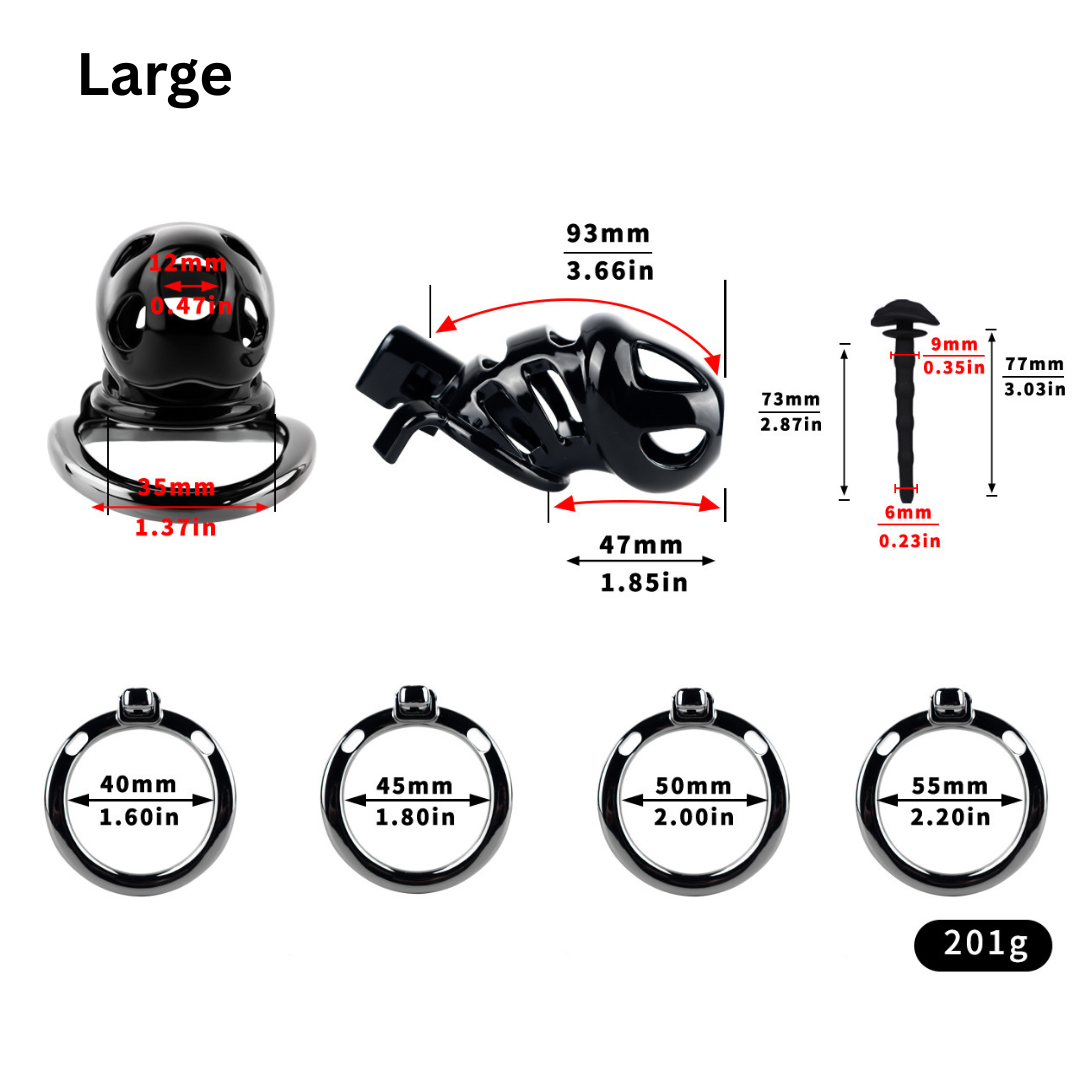Choose the cage size that fits you best: Small, Medium, or Large. The set includes multiple base rings—40mm (1.57”), 45mm (1.77”), 50mm (1.97”), and 55mm (2.16”)—so you get a snug, secure fit.